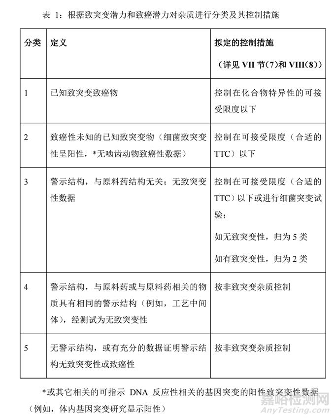 備注:此表源于9306 遺傳毒性雜質(zhì)控制指導原則