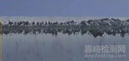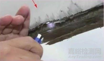 2)涂層底部的復(fù)合材料部分存在缺陷,導(dǎo)致葉片運(yùn)行過程中出現(xiàn)應(yīng)力集中,裂紋在涂層面上表現(xiàn)出來,如圖2和圖3所示。