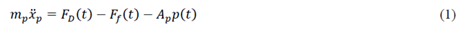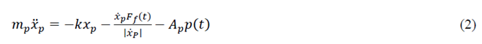 其中, FD(t)是驅(qū)動(dòng)力, Ff(t)是摩擦力, p(t)是活塞運(yùn)動(dòng)產(chǎn)生的流體阻力, mp和Ap分別是活塞質(zhì)量和表面積。在t= 0 時(shí), 活塞位移xp = 0, 活塞的速度dxp/dt = 0。