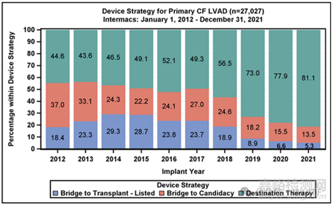 隨著人工心臟技術(shù)的不斷推廣,長期輔助已經(jīng)成為了應(yīng)用主流。在Intermacs兩萬例的病例報告統(tǒng)計中,美國超過80%的患者植入人工心臟的目的為終身長期輔助(Destination Therapy)。這也說明了在未來,長期輔助一定是人工心臟的趨勢。