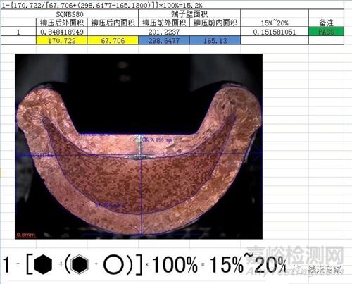 壓縮比=導體壓接后的面積/導體初始面積*100% <正常值75%~90%>