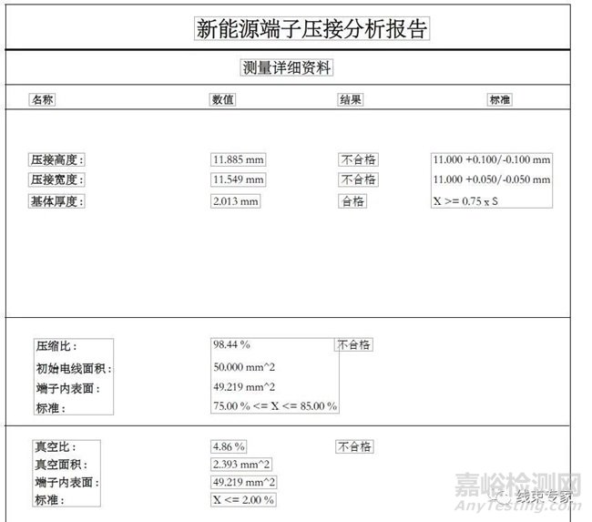 端子剖面分析的意義:用于檢測線束端子壓接內(nèi)部是否合格,這種檢測可以預防使用汽車線束、工業(yè)線束相關(guān)車輛、電氣產(chǎn)品的接觸不良、漏電,短路、短路,自燃等現(xiàn)象,降低安全問題發(fā)生的概率。