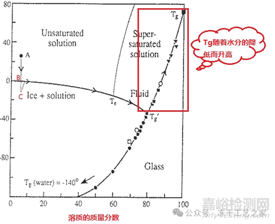 凍干粉餅的Tg隨著其水分含量的升高而降低:大概水分每增加1%,則產(chǎn)品的Tg降低10℃(此數(shù)據(jù)僅為一個(gè)大概的數(shù)據(jù),用戶幫助大家理解Tg和粉餅水分之間的關(guān)系)