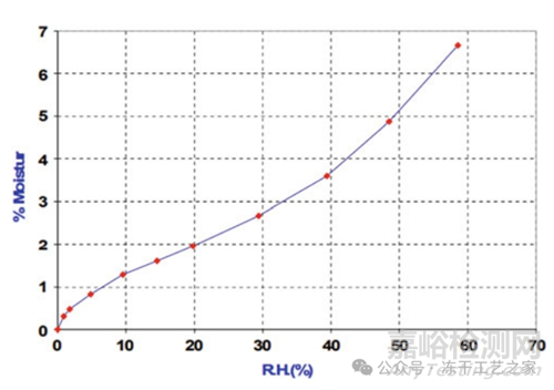 要獲得吸濕等溫線,需要將初始干燥的樣品置于相對(duì)濕度(RH)不斷增加的環(huán)境中,通常最高可達(dá) 70% RH;