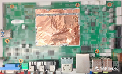 如圖所示,最終的整改措施加屏蔽。把散熱金屬下方的都用銅箔屏蔽,且銅箔與芯片之間保持一定的高度(如導(dǎo)熱硅膠)。