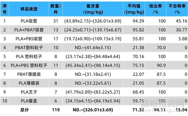 3.市售生物基塑料氟含量調(diào)查:PLA吸管氟超標(biāo)現(xiàn)象普遍