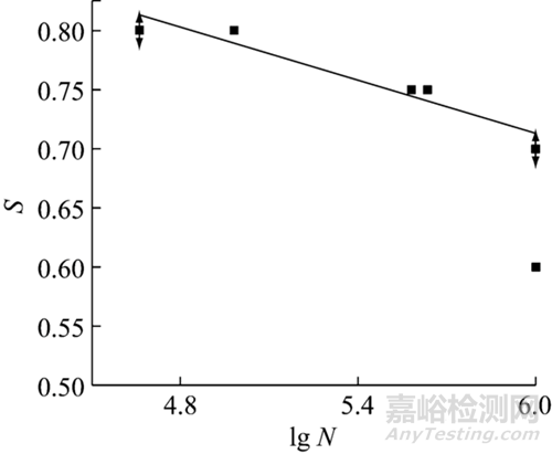 如圖4所示為疲勞數(shù)據(jù)以及其擬合曲線。