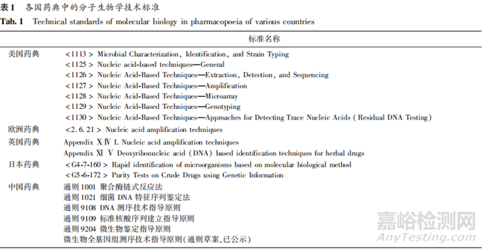 目前,各國藥典均收載了分子生物學技術用于藥品微生物質量控制的相關章節(jié)(表1)。我國藥典中分子生物學技術標準體系的構建起步較晚,2015 版《中國藥典》中藥品微生物鑒定方法主要基于形態(tài)學,生化反應等表型鑒定方法。但隨著 2020年版《中國藥典》第一個分子生物學檢查方法,聚合酶鏈式反應法(通則1001)的收載,我國藥典已陸續(xù)收載了6個分子生物學相關通則標準(表1)。自此我國藥典的分子生物學檢測技術體系從缺失的狀態(tài)逐漸走向完善階段,分子生物學標準體系的完善將為生物負載非無菌藥品中不可接受微生物控制和基于風險的藥品微生物全過程控制理念的落實提供技術支撐。