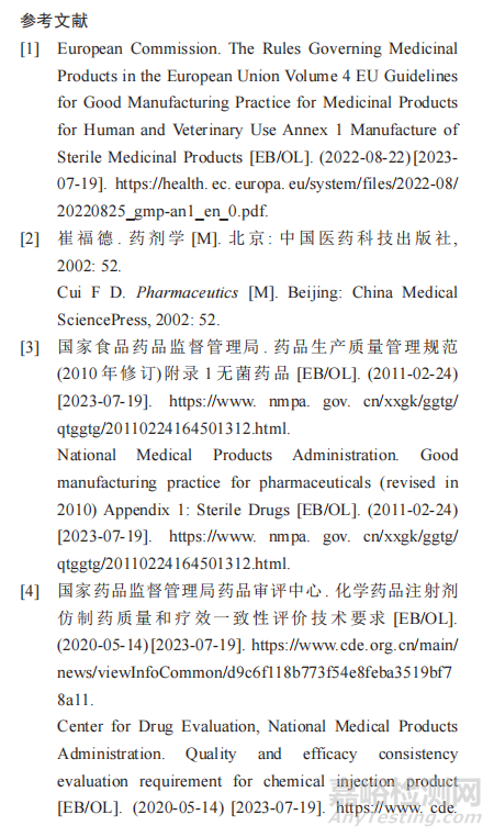 歐洲、美國(guó)、中國(guó)均制定了除熱原工藝驗(yàn)證標(biāo)準(zhǔn),匯總?cè)缦拢海?)《歐洲藥典》11.2“5.1.2注射劑生產(chǎn)中所用材料除熱原”章節(jié)中明確指出“工藝驗(yàn)證的標(biāo)準(zhǔn)為可回收內(nèi)毒素減少至少 3 個(gè)對(duì)數(shù)值”[6]。(2)FDA 發(fā)布的《無(wú)菌工藝生產(chǎn)的無(wú)菌藥品-現(xiàn)行藥品生產(chǎn)質(zhì)量管理規(guī)范》“Ⅵ. 成分和容器/密封件”章節(jié)中明確指出“驗(yàn)證研究數(shù)據(jù)應(yīng)證明該操作減少內(nèi)毒素含量至少 99.9%(3 個(gè)對(duì)數(shù))”[14]。(3)《美國(guó)藥典》2023 年版中關(guān)于除熱原工藝驗(yàn)證標(biāo)準(zhǔn)的觀點(diǎn)有所不同 ,“1228 干熱除熱原”[15]和“1228.4 沖洗除熱原”[15]章節(jié)認(rèn)為應(yīng)在充分了解產(chǎn)品和除熱原工藝能力的基礎(chǔ)上,確定適當(dāng)?shù)膬?nèi)毒素對(duì)數(shù)減少量和產(chǎn)品的內(nèi)毒素限度要求,例如干熱除熱原要求不超過0.1 EU;彈性體密封件通常很少或沒有檢測(cè)到內(nèi)毒素,其沖洗除熱原可接受下降2個(gè)對(duì)數(shù)單位;對(duì)于本身內(nèi)毒素很高的材料減少3個(gè)對(duì)數(shù)單位的限度則可能仍是遠(yuǎn)遠(yuǎn)不夠的。(4)國(guó)內(nèi)發(fā)布的《藥品 GMP 指南:無(wú)菌藥品》[10]和《中國(guó)藥典》2020年版中“1421 滅菌法”章節(jié)中均明確指出“一般將不小于1 000 IU的細(xì)菌內(nèi)毒素加入待除熱原的物品中,證明該除熱原工藝能使內(nèi)毒素至少下降3個(gè)對(duì)數(shù)單位”[16]。