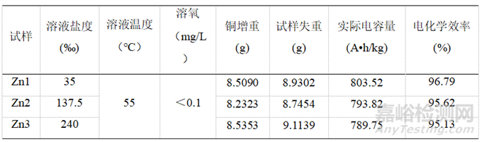 2)相較于鋁陽極,鋅陽極(Zn-Al-Cd)在不同鹽度的高溫低氧海水中,電容量和電化學效率變化較小,未出現極性逆轉現象,表現出更穩(wěn)定的性能,使其成為在特殊條件下的可行選擇。