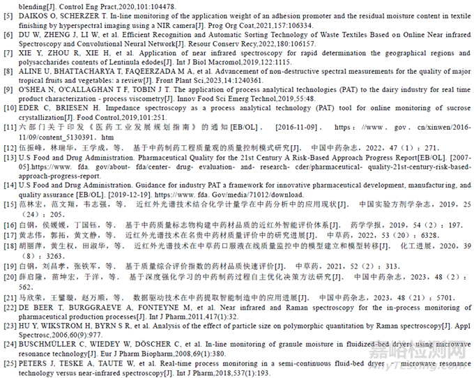 在全球視野下,過程分析技術(shù)在中藥制造工業(yè)生產(chǎn)中的應用日益成為發(fā)展趨勢。2017 年我國正式加入ICH 以后,加速推動PAT 相關(guān)技術(shù)和法規(guī)的研究,2022 年8 月已正式頒布了《化藥及原料藥連續(xù)制造指南》,2023 年11 月頒布了《中藥口服制劑生產(chǎn)過程質(zhì)量控制研究技術(shù)指導原則(征求意見稿)》,為行業(yè)開展中藥口服制劑生產(chǎn)過程質(zhì)量控制研究,提高中藥質(zhì)量可控性提供了參考和指導,必將加速推動PAT 在中藥生產(chǎn)中的應用。
