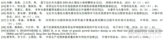 摘要 在中藥制造工業(yè)中,質(zhì)量控制決定藥品的安全性、有效性及質(zhì)量的穩(wěn)定性。而傳統(tǒng)質(zhì)量控制方式一般在批生產(chǎn)結(jié)束后對藥品進行抽樣離線檢測,這種方式不僅缺乏全面性,且不能及時發(fā)現(xiàn)生產(chǎn)環(huán)節(jié)中存在的問題。過程分析技術(shù)(process analysis technology, PAT)采用過程檢測、數(shù)學建模、數(shù)據(jù)分析等技術(shù)對中藥制劑生產(chǎn)各個環(huán)節(jié)的關(guān)鍵質(zhì)量屬性(critical quality attributes, CQA)進行實時收集、分析、反饋、控制以及持續(xù)改進。PAT 在中藥制造工業(yè)中的應用是近年來研究的熱點之一,其對中藥制劑生產(chǎn)質(zhì)量控制具有實時性、系統(tǒng)性、無損綠色、整體快速檢測等優(yōu)勢,可有效保障中藥制劑質(zhì)量的穩(wěn)定性、提高生產(chǎn)效率,并對中藥量-質(zhì)傳遞規(guī)律研究具有關(guān)鍵作用。常用的PAT 有近紅外光譜、拉曼光譜、在線微波等,運用PAT 建立在線檢測模型是中藥生產(chǎn)實現(xiàn)智能制造的關(guān)鍵基礎性工作;通過PAT 獲得實時在線檢測數(shù)據(jù)并以此為基礎建立閉環(huán)控制模型是行業(yè)的關(guān)鍵共性技術(shù)難點。該文采用系統(tǒng)文獻分析法總結(jié)歸納了國內(nèi)外相關(guān)文獻、政策法規(guī)以及生產(chǎn)應用等,對過程分析技術(shù)的發(fā)展趨勢以及實際應用情況進行介紹匯總,以期為推動PAT 在中藥制造工業(yè)中的應用提供借鑒,助推中藥行業(yè)智能化轉(zhuǎn)型升級及高質(zhì)量發(fā)展。