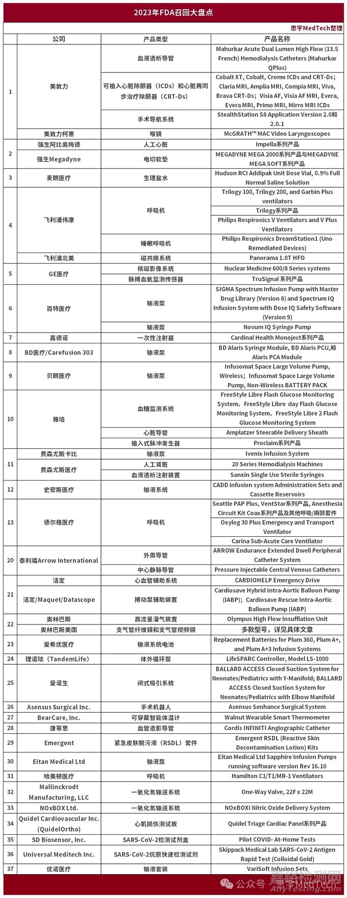 以下為2023年度FDA的召回產(chǎn)品和召回原因(基本按公告更新時(shí)間排序):