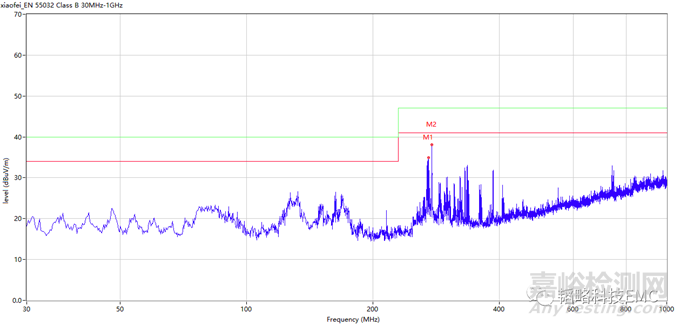 (1)100MHz電源包絡(luò)超標(biāo),通過(guò)磁環(huán)驗(yàn)證,以及頻譜儀掃描得出結(jié)論是電源模塊輻射超標(biāo),以及線束耦合被帶出。