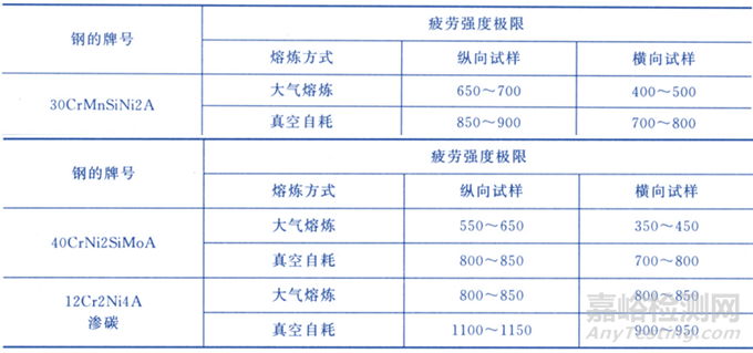 表4 真空電弧重熔對(duì)高強(qiáng)度鋼以及滲碳齒輪鋼疲勞強(qiáng)度的影響