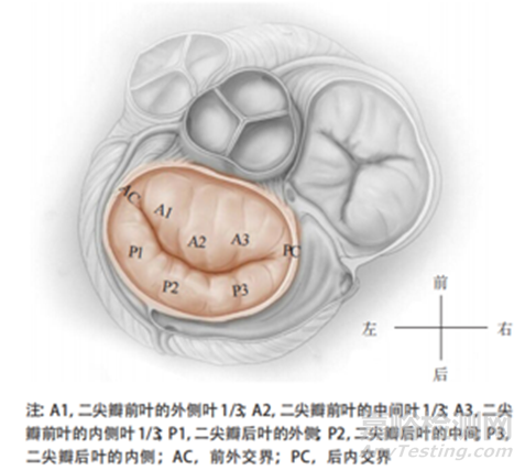 圖 二尖瓣的瓣葉解剖示意圖
