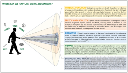 數(shù)字生物標志物在行走、交談、思考、觀察和感受五個維度上值得關(guān)注。