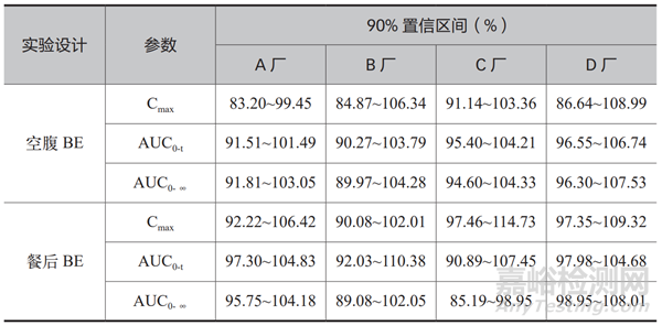 藥學(xué)等效,不一定生物等效。希望采用一致性評價(jià)的方式可以提高藥品質(zhì)量,希望仿制制劑能夠?qū)崿F(xiàn)在藥學(xué)等效的基礎(chǔ)上,服用相同劑量,與原研制劑在活性成分的吸收程度和速度上,具有相同的安全性和有效性,無明顯的統(tǒng)計(jì)學(xué)差異,達(dá)到生物等效。在已通過 CDE 的信息中筆者獲取到:各生產(chǎn)企業(yè)經(jīng)過充分的藥學(xué)研究和工藝研究,在 BE(生物等效性)實(shí)驗(yàn)中,基于單次實(shí)驗(yàn) 32 例 ~50 例受試者參與的基礎(chǔ)上,采用“單中心、隨機(jī)、開放、三周期、三序列、部分重復(fù)交叉試驗(yàn)設(shè)計(jì)空腹和餐后試驗(yàn)”的實(shí)驗(yàn)設(shè)計(jì)方案,或增加“四周期、雙制劑”的研究,或采取大規(guī)格制劑的 BE 豁免小規(guī)格制劑的實(shí)驗(yàn)設(shè)計(jì)策略;等效標(biāo)準(zhǔn)設(shè)置為受試制劑和原研制劑藥代動(dòng)力學(xué)參數(shù)(Cmax、AUC0-t、AUC0-∞)經(jīng)對數(shù)轉(zhuǎn)換后的幾何平均值比值的 90%置信區(qū)間在 80.00% ~ 125.00% 范圍內(nèi) [6]。