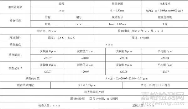 若|δ|≤0.03μm,則核查結(jié)果符合要求,否則不符合要求。