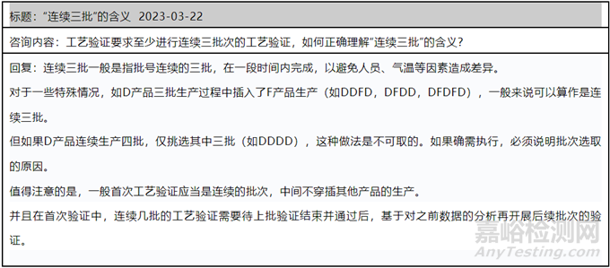 1、怎樣算是連續(xù)三批次?中間可以插入其他產(chǎn)品嗎?
