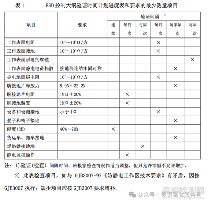 ESD控制大綱驗證時間計劃進度表和要求的測量項目見下表1。