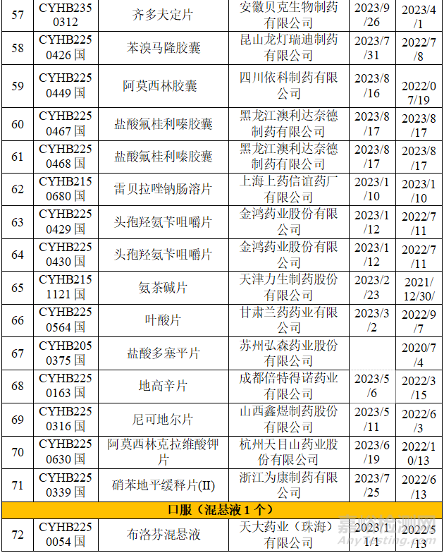 從上表可知,2023年藥品通知件中共72個受理號,注射劑53個,占73.6%,其中注射液31個,凍干粉針22個;口服固體制劑18個,混懸劑1個。歸結(jié)起來主要有兩個原因:1.參比制劑;2、規(guī)格的臨床合理性。