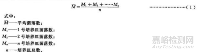 2.每個(gè)測(cè)點(diǎn)的沉降菌平均菌落數(shù)的計(jì)算,見式(1)。