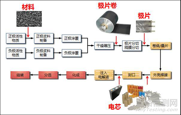 鋰電池的生產(chǎn)工藝流程基本如下: