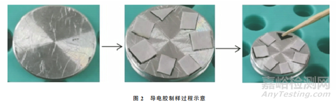 制樣過(guò)程中需要佩戴手套和口罩,避免污染試樣臺(tái),試樣制備完畢后,如果試樣導(dǎo)電性能不佳,需要進(jìn)行鍍膜處理,鍍膜后用強(qiáng)力吹風(fēng)機(jī)對(duì)其進(jìn)行充分吹掃,以保證臺(tái)面上沒(méi)有未固定牢的試樣。