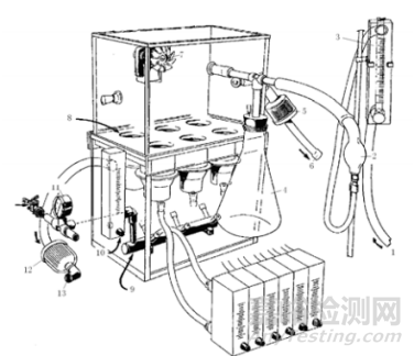 原理:在特定試驗(yàn)箱內(nèi),使透氣材料樣品經(jīng)受萎縮芽孢桿菌芽孢氣溶膠,用濾膜收集穿透透氣樣品的芽孢并對其計(jì)數(shù)。