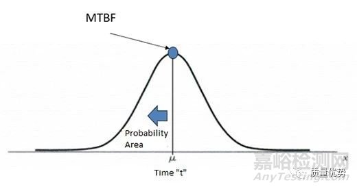 MTBF是根據(jù)一組數(shù)據(jù)計(jì)算得到的平均數(shù)。也就是說,將一組數(shù)據(jù)生成一個(gè)柱狀圖,其中平均值是MTBF。假設(shè)這個(gè)分布是正態(tài)分布,我們將得到下圖所示的正態(tài)曲線,MTBF位于圖表中間。