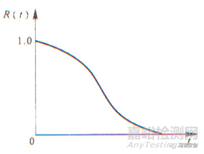 如上圖所示,產(chǎn)品開始使用時,R(0)=100%,當產(chǎn)品的使用時間無窮大時,全部產(chǎn)品都會失效,即R(∞)=0.