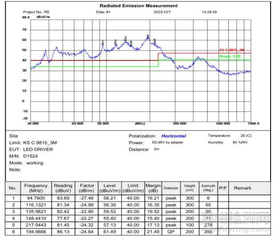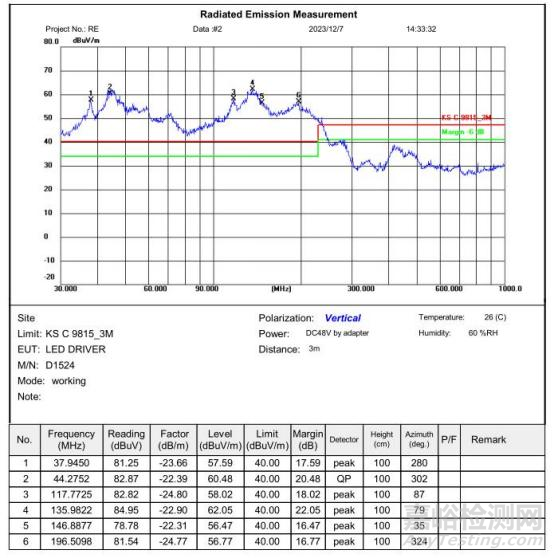 4、 拔掉LED燈線材,測試發(fā)現(xiàn)超標的包絡消失,數(shù)據(jù)合格;