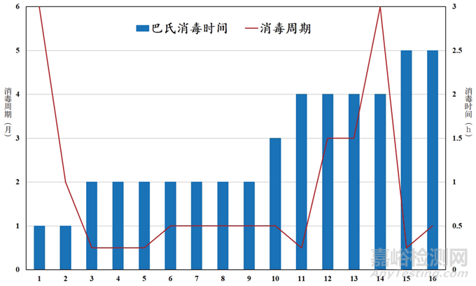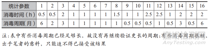 表2 調(diào)研 16 套純化水系統(tǒng)的消毒數(shù)據(jù)