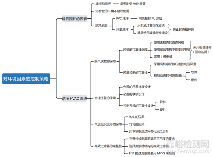 同樣,使用思維導(dǎo)圖對環(huán)境因素中的污染風(fēng)險(xiǎn)進(jìn)行梳理分析,如圖 6 所示。藥品生產(chǎn)的潔凈環(huán)境是保證產(chǎn)品質(zhì)量的基本條件,除塵最終是依靠高效過濾器來完成的。特別是對于非最終滅菌的注射劑來說,高效過濾器的完整性是產(chǎn)品質(zhì)量的關(guān)鍵因素。所謂的潔凈區(qū)域是具備自凈能力的,也就是說隨著時(shí)間的推移會越來越干凈。然而有些企業(yè)似乎每間隔一段時(shí)間,必須對區(qū)域進(jìn)行一次熏蒸來殺滅微生物。這就說明了潔凈系統(tǒng)存在著問題,這有可能是高效過濾器泄漏,也有可能是系統(tǒng)設(shè)計(jì)存在“bug”——自凈存在死區(qū)。