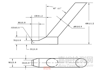 2. 站立兒童足型試具不應(yīng)進入切割器件組件的軌跡,同樣的,將站立兒童足型試具沿著智能割草機器人的外部外殼以最不利的方位插向切割部件,確認切割器件組件是否有碰到站立兒童足型試具,站立兒童足型試具試具規(guī)格尺寸詳見下圖:
