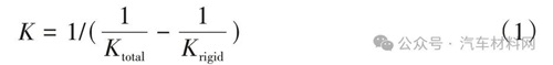 式中:Ktotal = F/Uflex;Krigid = F/Urigid;Uflex、Urigid 分別為柔性副車架模型、剛性體副車架模型同一加載點的位移。