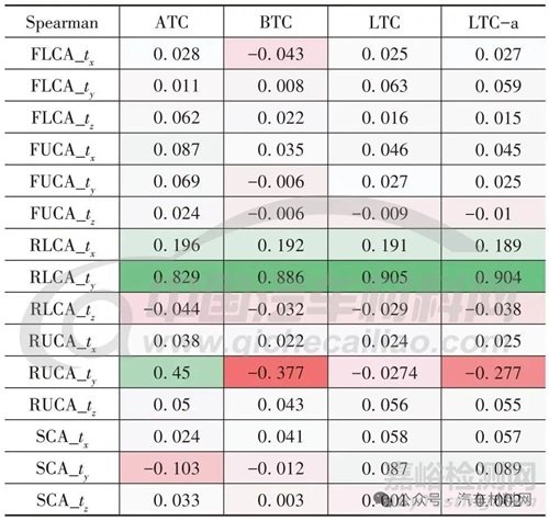 表3 K&C性能與靜剛度的相關(guān)系數(shù)