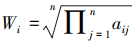 其次將向量求和歸一化處理得到權重向量,即第i項指標的權重