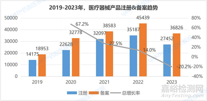 1.1 2019年-2023年醫(yī)療器械產(chǎn)品注冊(cè)&備案趨勢(shì)