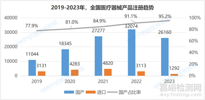 2023年,全國(guó)醫(yī)療器械注冊(cè)產(chǎn)品國(guó)產(chǎn)占比率達(dá)到95.2%。