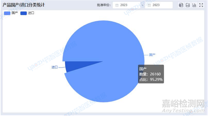 其中,2023年醫(yī)療器械產(chǎn)品國(guó)產(chǎn)注冊(cè)共26160項(xiàng),占全年醫(yī)療器械產(chǎn)品注冊(cè)量的95.29%。