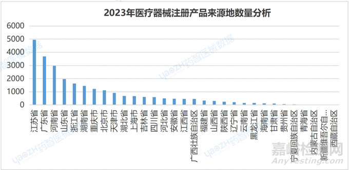 2.2 2023年國(guó)產(chǎn)醫(yī)療器械注冊(cè)產(chǎn)品來(lái)源地?cái)?shù)量分析