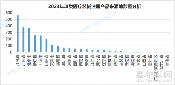 2.4 2023年全國(guó)Ⅲ類(lèi)醫(yī)療器械注冊(cè)產(chǎn)品來(lái)源地?cái)?shù)量分析