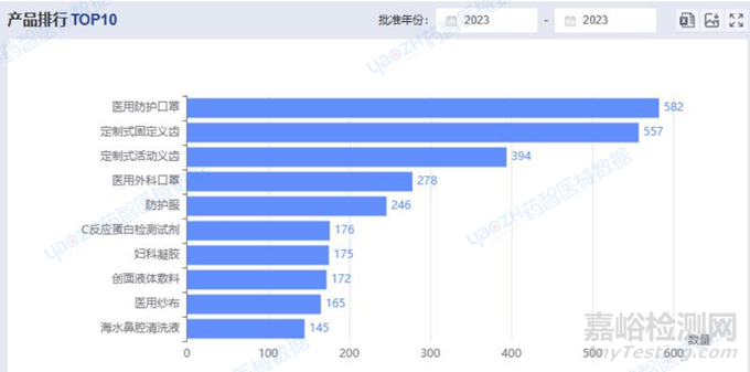從產(chǎn)品品類(lèi)來(lái)看,截至目前,2023年全國(guó)注冊(cè)醫(yī)療器械產(chǎn)品中醫(yī)用防護(hù)口罩注冊(cè)數(shù)量排名第一,有582項(xiàng)。
