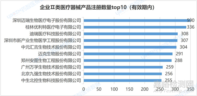 2.8 全國(guó)企業(yè)Ⅱ類(lèi)國(guó)產(chǎn)醫(yī)療器械產(chǎn)品注冊(cè)情況(top10)