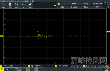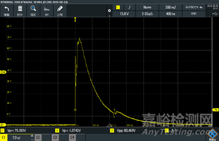 800V初始靜電波形 超出示波器測(cè)量范圍