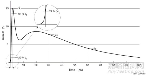 圖一 IEC61000-4-2標(biāo)準(zhǔn)靜電放電校準(zhǔn)波形