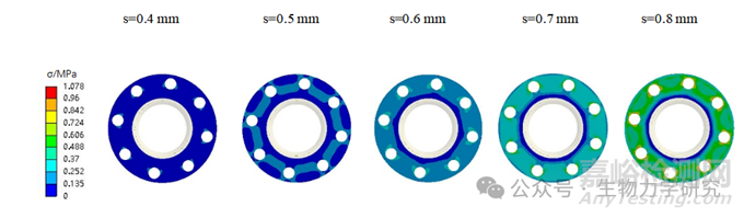 圖1 不同施壓距離(s)下吻合端面的內(nèi)表面應力分布