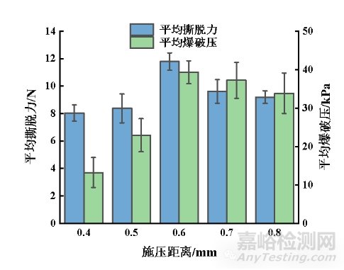 圖3 不同施壓距離下的吻合口強度